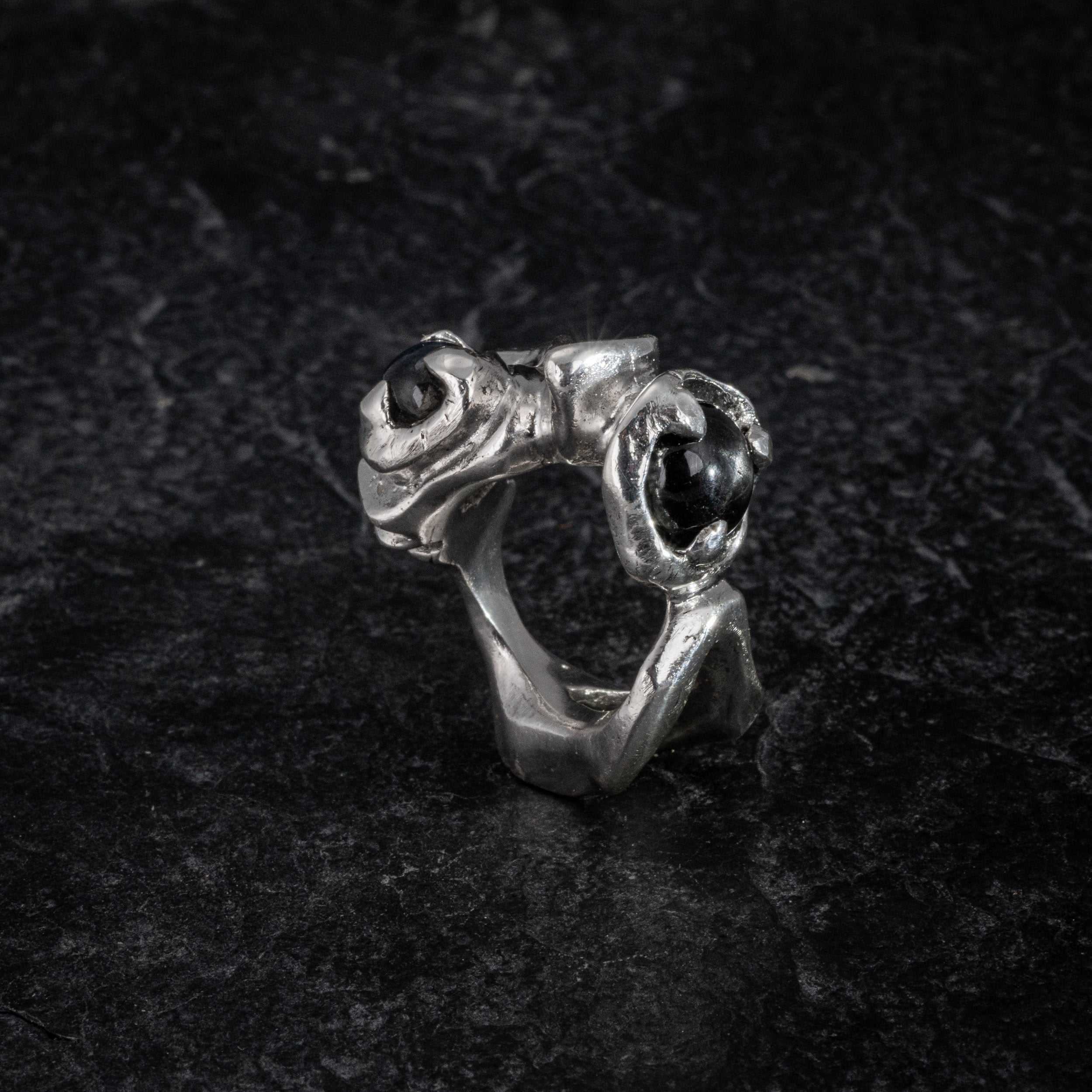 Two gemstones lie at the heart of the intricate spiral shell design. Just like the hidden beauty within a snail's shell, the stones add a touch of brilliance and allure to the ring. It symbolizes the treasures that can be found within and serves as a reminder of the hidden wonders that await those who take the time to observe and appreciate the world around them.